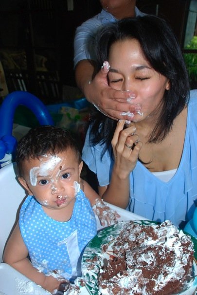 Waa... Om Abang nihh! Belepotan dehhLook at Farrel's face filled with whipped cream but still ready for the camera!